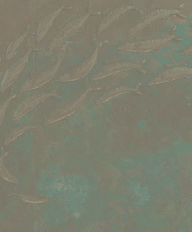 ‘What at first glance looks like paintings are more like 3D sculptures made from metal, with a very particular character that lends itself very well to fish and underwater subjects and a stunning amount of naturalism and detail considering the material.’