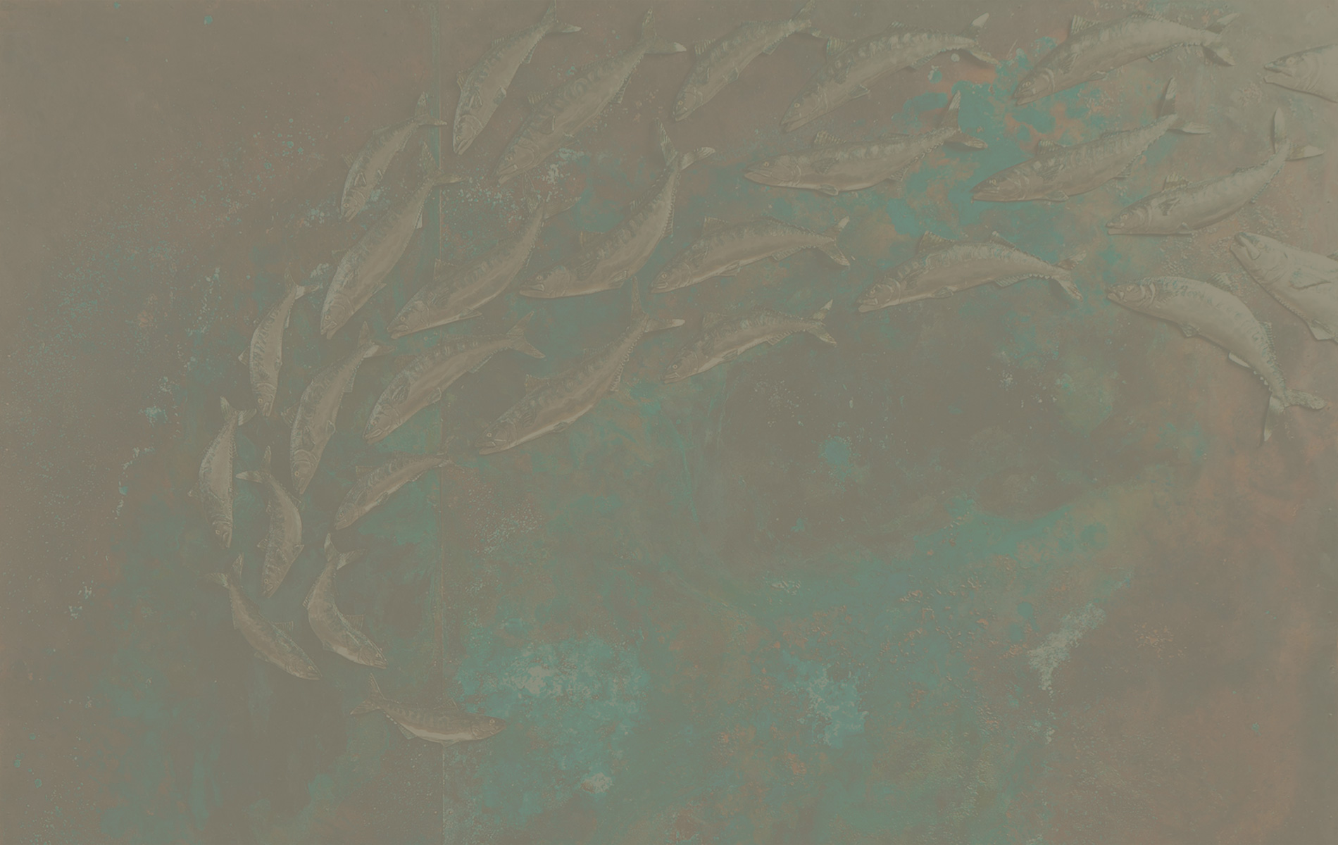 ‘What at first glance looks like paintings are more like 3D sculptures made from metal, with a very particular character that lends itself very well to fish and underwater subjects and a stunning amount of naturalism and detail considering the material.’